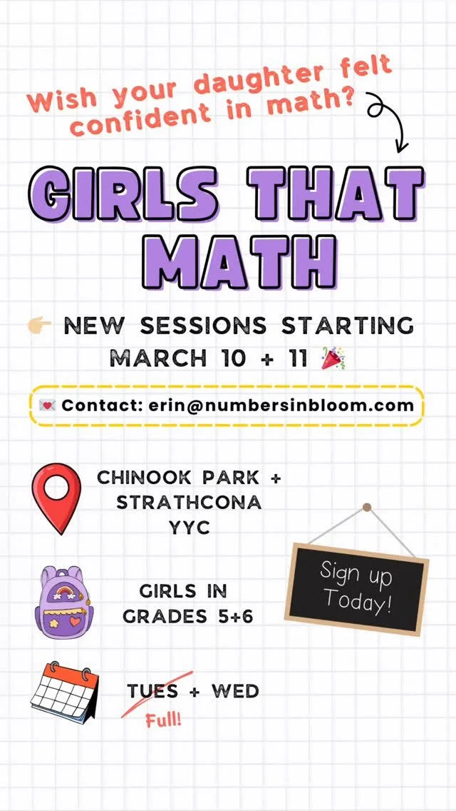 My signature program! Girls That Math is a small-group program, yep you guessed it β for girls! GTM helps girls in Grades 5+6 strengthen foundational math skills (think: times tables, division skills, adding and subtracting, etc.) and build confidence as learners.